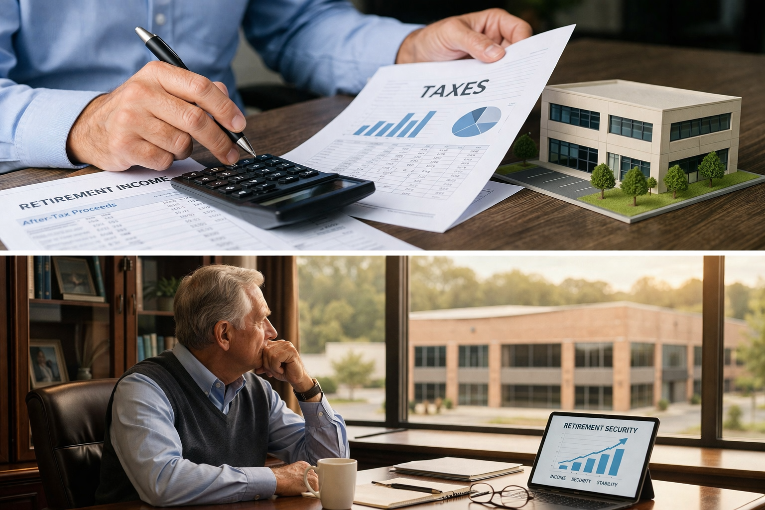 For owner-operators, tax concerns often intersect with business exit decisions. Selling a business and building together or separately may affect both net proceeds and retirement income structure.